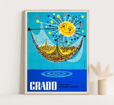 Grado Italy Vintage Travel Poster: Smiling Sun, Mid-Century Modern Wall Art
