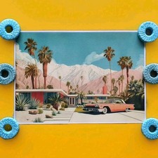 Canvas Poster Mid Century Modern Home 60s Car Pop Colors 9" X 12" Palm Springs