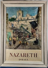 Vintage Original 1958 Nazareth Israel Tourism Travel Poster Framed 42" x 30"
