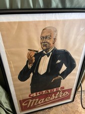 Vintage 1920's Belgium Maëstro Cigares Linen Back 32" X 48" Advertising Poster