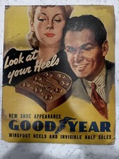 Vtg GoodYear Wingfoot Heels Advertising Cardboard Sign Litho 16x20 Early 1900s