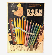 Colored Pencils - Advertising Poster - Beautiful Vintage - 1964 Original Soviet