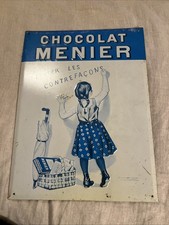 Rare Blue & White “Chocolat Menier” Advertising Metal Poster 11.75x15.5”