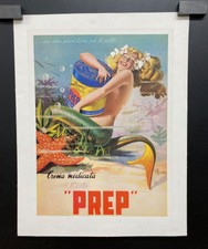 ORIGINAL Vintage Advertising Poster Mermaid PREP Medicated Skin Cream ON LINEN