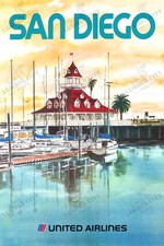 San Diego United Airlines Travel Poster Wall Art Print Retro