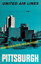 Pittsburg Pennsylvania 1960 Airline Travel Vintage Poster Print Retro Style Art