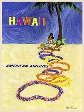 United Airlines Hawaii poster Pegge Hopper 1985 original on linen