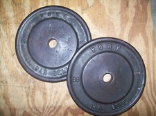 vtg YORK BARBELL 25s BodyBuilding STRONGMAN Fitness ANTIQUE iron WEIGHT PLATES