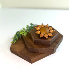 Vintage Wooden Beaded Sunburst Brooch Mid Century Boho Artisan Pin Brown 70s
