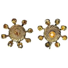 1940s Vintage Coro Earrings Mid Century Modern Yellow Topaz Rhinestone Gold Tone