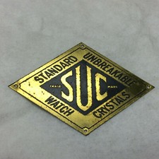 Vintage Advertising Metal Tag Sign SUC Standard Unbreakable Watch Crystals