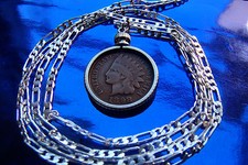 Original Rare Indian Head Penny Pendant on a 28" 925 Sterling Silver Chain.