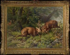 Old Master-Art Antique Oil Painting animal Portrait deer on canvas 24"x30"