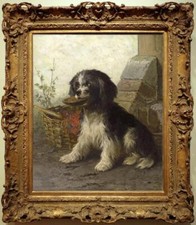 Handmade Old Master-Art Antique Oil Painting Animal Portrait dog on canvas