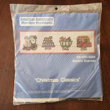 Vintage 1979 American Handicrafts Needlework Crewel Kit Christmas Toy Train 20x6