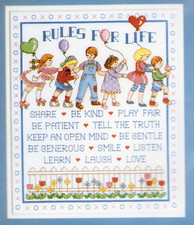 Cross stitch KIT VINTAGE Sealed Children Rules Life Balloons Toys J&P Coats OOP