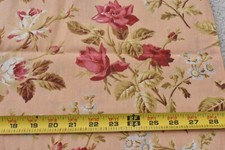 By 1/2 Yd, 24" Wide, Antique, Large Pink & Olive Roses on Peach Cotton, P840