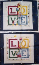 Lot of 2~Maywood Studio~All Through Night~"L•O•V•E"~Cotton Fabric Panel~8"x8" ea