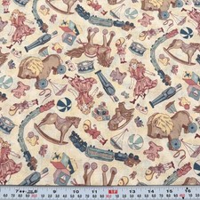 Vintage Children's Toys on Cream Unbranded Cotton Fabric by the HALF YARD