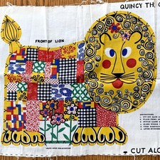 Vintage Fabric Panel Quincy the Quilted Lion Cut & Sew Pillow Stuffed Toy * READ