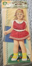 Vintage Cut and Sew Fabric Panel Gingham Toy Doll with cloth dresses 10"