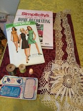 ANTIQUE-VINTAGE SEWING LOT AND SUPPLIES-TRIMS- SEWING BOOK AND MORE!