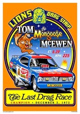 VINTAGE REPRODUCTION RACING POSTER TOM McEWEN LIONS LAST RACE HOT WHEELS