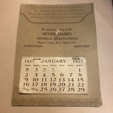 1927 NEVINS Hanks Stringtown Kentucky calendar General Store Advertising Sign