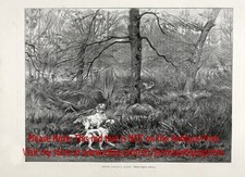 Dog English Setter, Pointer, Hunters, Hunting Woodcock Large 1880s Antique Print