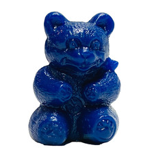Cute Vtg Figurine Toy 80's Bear Blue Sculpted Fur Smiling Bow Forest Animal