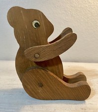Vintage Hand Made Wooden Wood Teddy Bear Toy Figurine 6" Movable Arms & Legs