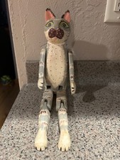 VINTAGE ~ TOY CARVED WOODEN CAT, MOVABLE ARMS & LEGS 15 In Great Cond
