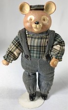 Vintage Porcelain Plush Bear In Overalls Shirt Doll Figurine Unbranded 6.5” EVC