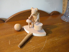 VINTAGE USSR RUSSIAN HAND CARVED WOOD ANIMATED BEAR PLAYING A DRUM