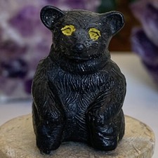 VTG Black Forest Bear Figurine Yellow Eyes MINI Plastic Figure Toy JC Hong Kong