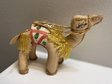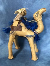 VINTAGE Folk Art LEATHER CAMEL handmade CHRISTMAS stitched EGYPT stuffed RARE 6”