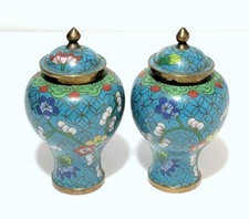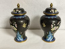 vintage pair cloisonne Ginger Jars Urn Vase With Lid 8”