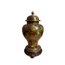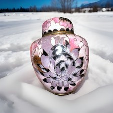 Vintage Cloisonné Ginger Jar/Urn W/ Lid Brass Handpainted Enamel