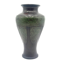 Antique or VTG Asian Urn Chinese/Japanese Bronze 12" Vase w/Patina Green Design