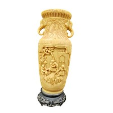 Vintage Chinese Carved Composite Vase Or Urn With Elephant Head Handles - Asian