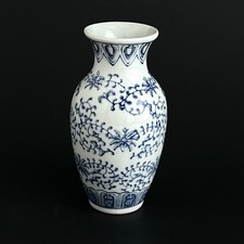 Vintage Blue & White Vines Porcelain Chinese Vase Urn Small Floral 5.5 Inch