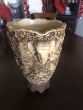 Large Vintage Carved Vase or Urn with Elephant Heads as Handles. Heavy!