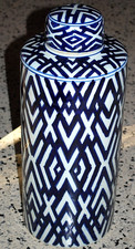 Vintage Blue White Chinese Porcelain Ginger Jar Lidded Urn Chinoiserie Large