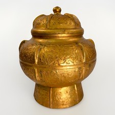 vintage mid century Asian Brass Ginger Jar / Urn 5 1/4” Tall