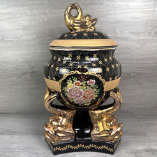 Vintage Toyo Macau Urn Lid Candle Holders Floral Animal Jar Vase