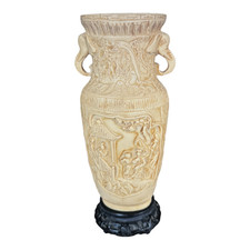 Vintage Asian Chinese Molded Composition Urn Vase with Elephant Handles