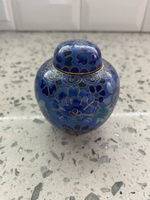 Vtg Small Chinese Blue Cloisonné Ginger Urn Lidded Jar 3 1/4in
