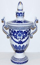 “DYNASTY" by Heygill & Macau Ceramic Urn Vase 14" Blue Floral Handpainted