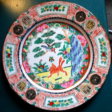 ANTIQUE Chinese Crane painted Plate beautiful Made In Hong Kong