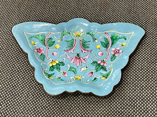 Vtg Possibly Antique Chinese Cloisonne Butterfly Form Trinket Dish w/ Floral Dec